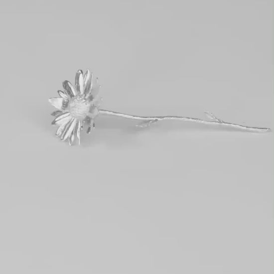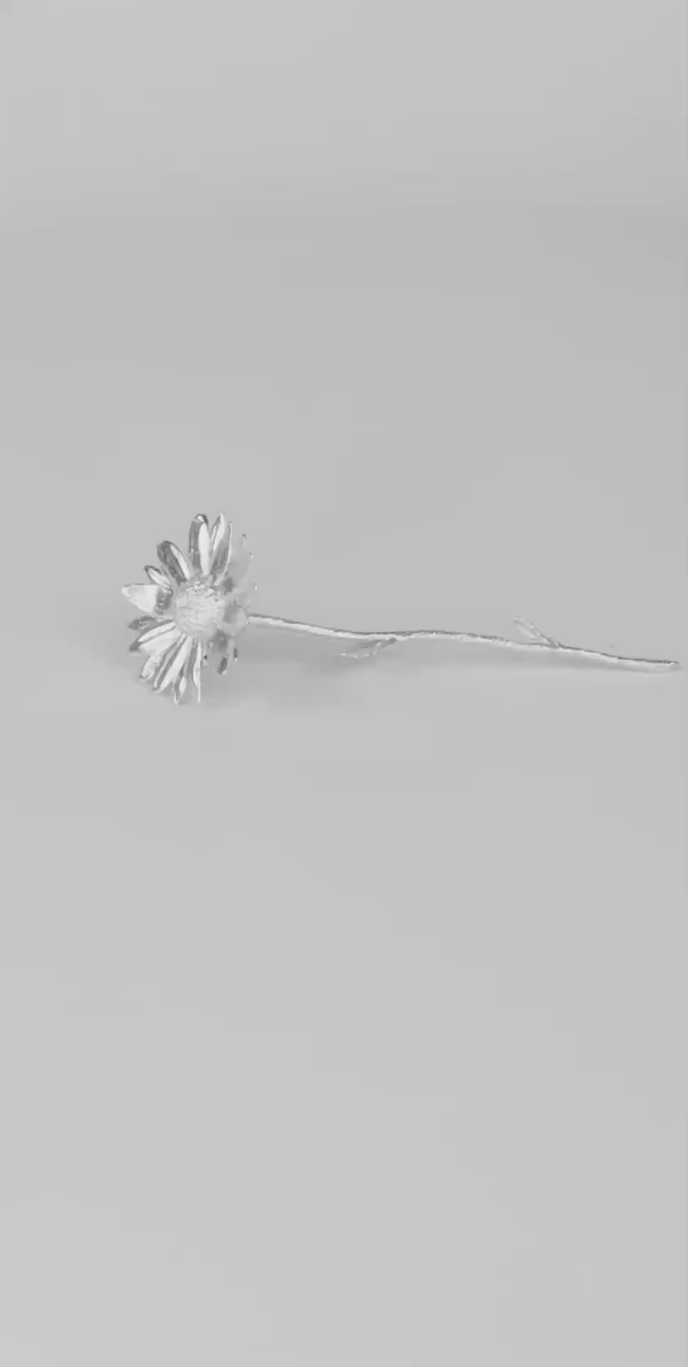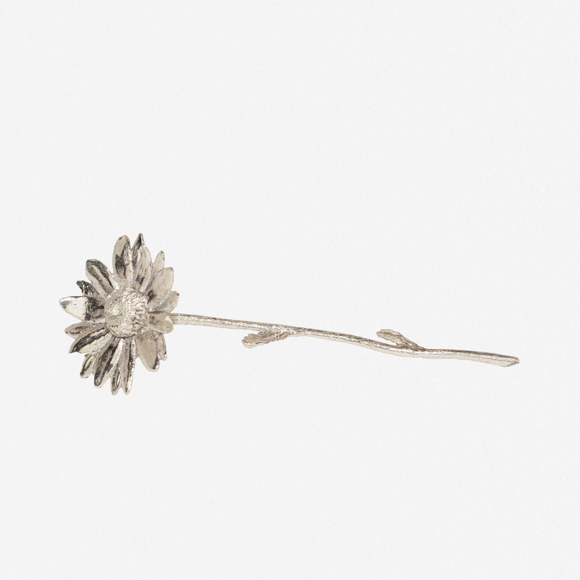 This silver brooch is shaped after the daisy, a flower celebrated for its purity and fresh start symbolism. The daisy stands for innocence and the optimistic spirit of renewal, qualities captured in the clean and simple design of this piece. Its symmetrical petals and uncluttered appearance reflect a straightforward yet graceful aesthetic.